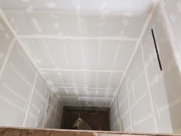 Drywall installation on an elevator shaft for the lincoln county school district in Newport oregon.